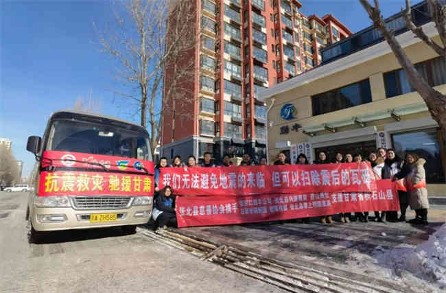 12月22日下午2點,張家口勤豐公司董事長帶領(lǐng)公司員工、慈善協(xié)會志愿者一行十人,從張北到災(zāi)區(qū)吃住都在車上,安全抵達(dá)甘肅省臨夏市積石山縣后,配合臨夏市慈善協(xié)會,將物資捐贈至積石山縣吹麻灘鎮(zhèn)人民政府。